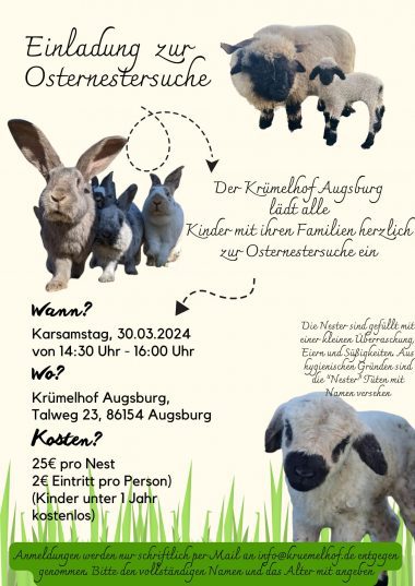 Einladung zur Osternestersuche Der Krümelhof Augsburg lädt alle Kinder mit...
